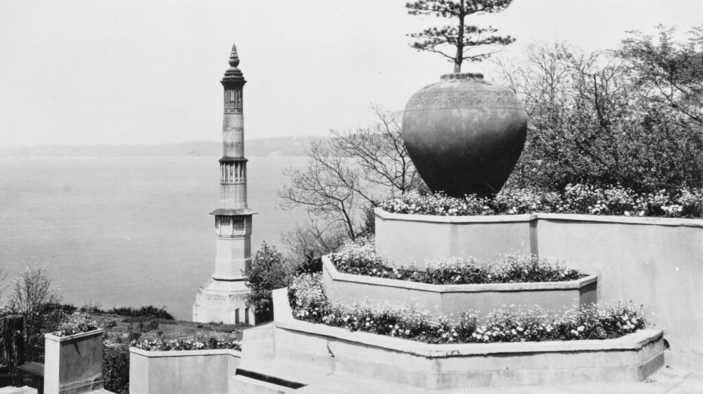 这座尖塔位于庄园水仙花露台(Daffodil Terrace)区域,是庄园供暖系统的一部分。当年由于路易斯不想看到传统的烟囱,就设计了这座独特的尖塔,塔的上端还镶嵌了闻名遐迩的蒂芙尼彩色玻璃。